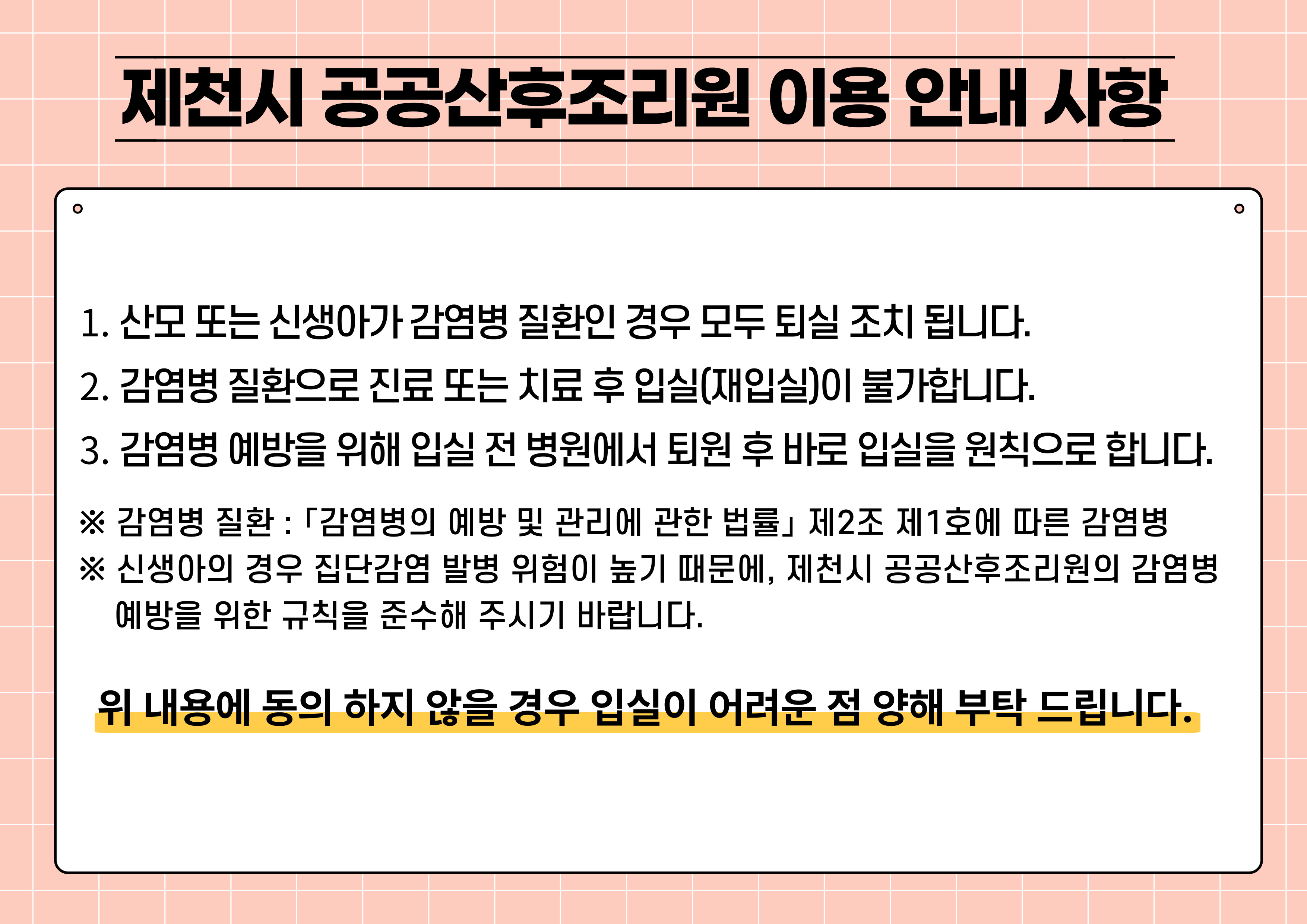 이용약관 개인정보처리방침 ⓒ 제천시 공공산후조리원 ALL RIGHTS RESERVED.
