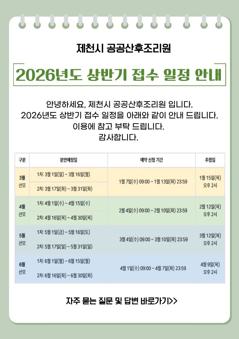 이용약관 개인정보처리방침ⓒ 제천시 공공산후조리원 ALL RIGHTS RESERVED.